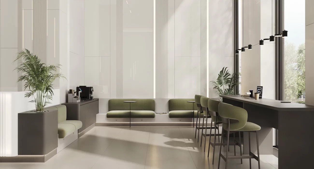 - Дизайнерские лобби: потолки до 9 м, авторская отделка, мебель и свет на заказ
