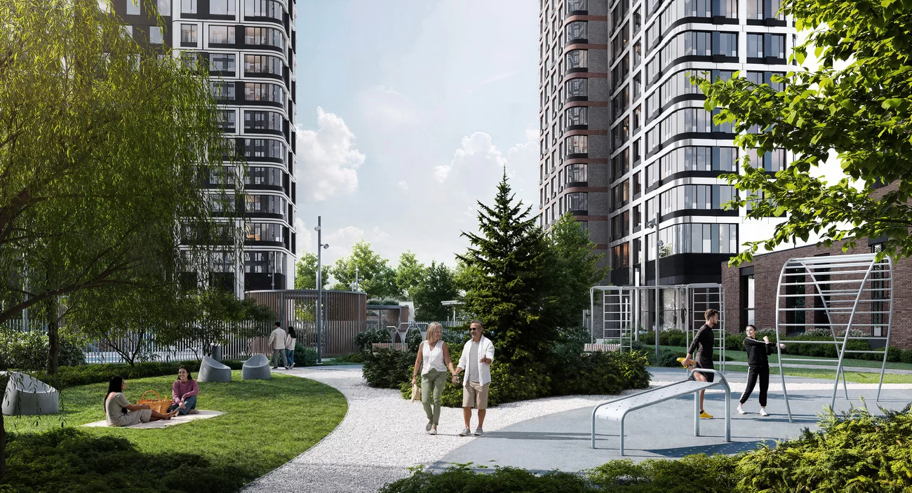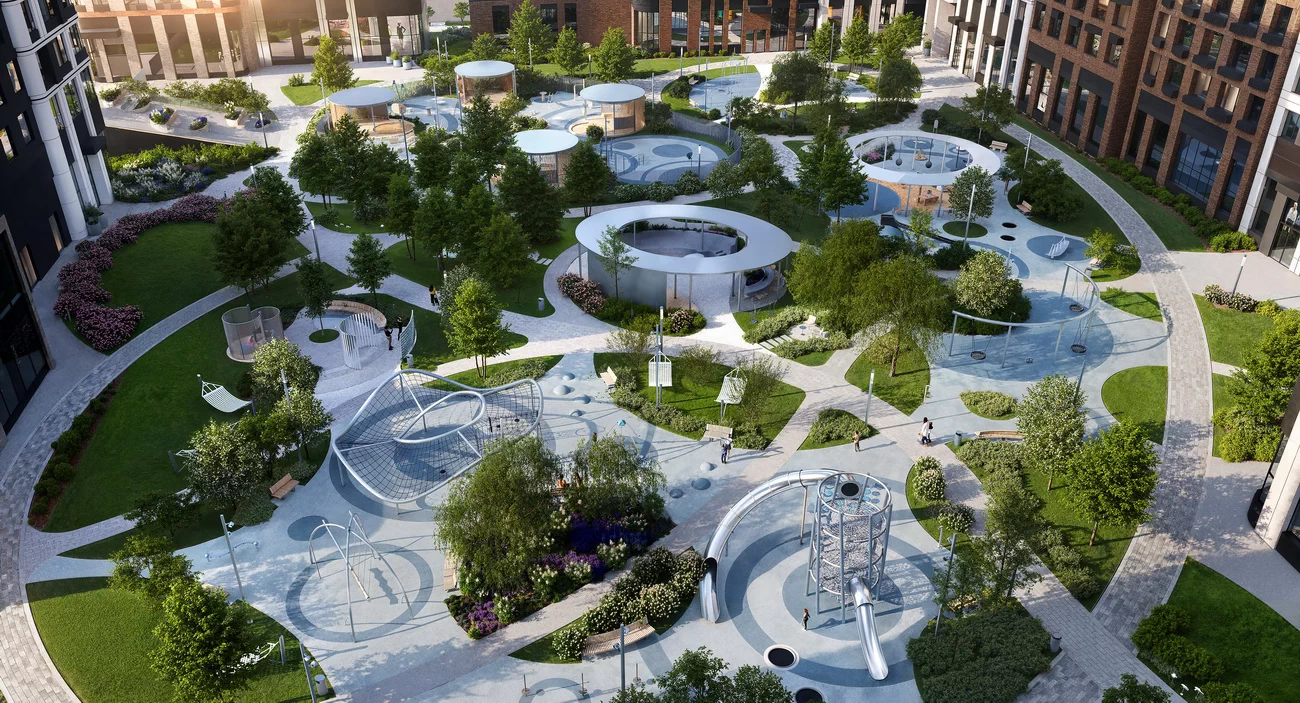 Квартал с парками во дворах и семейным променадом
