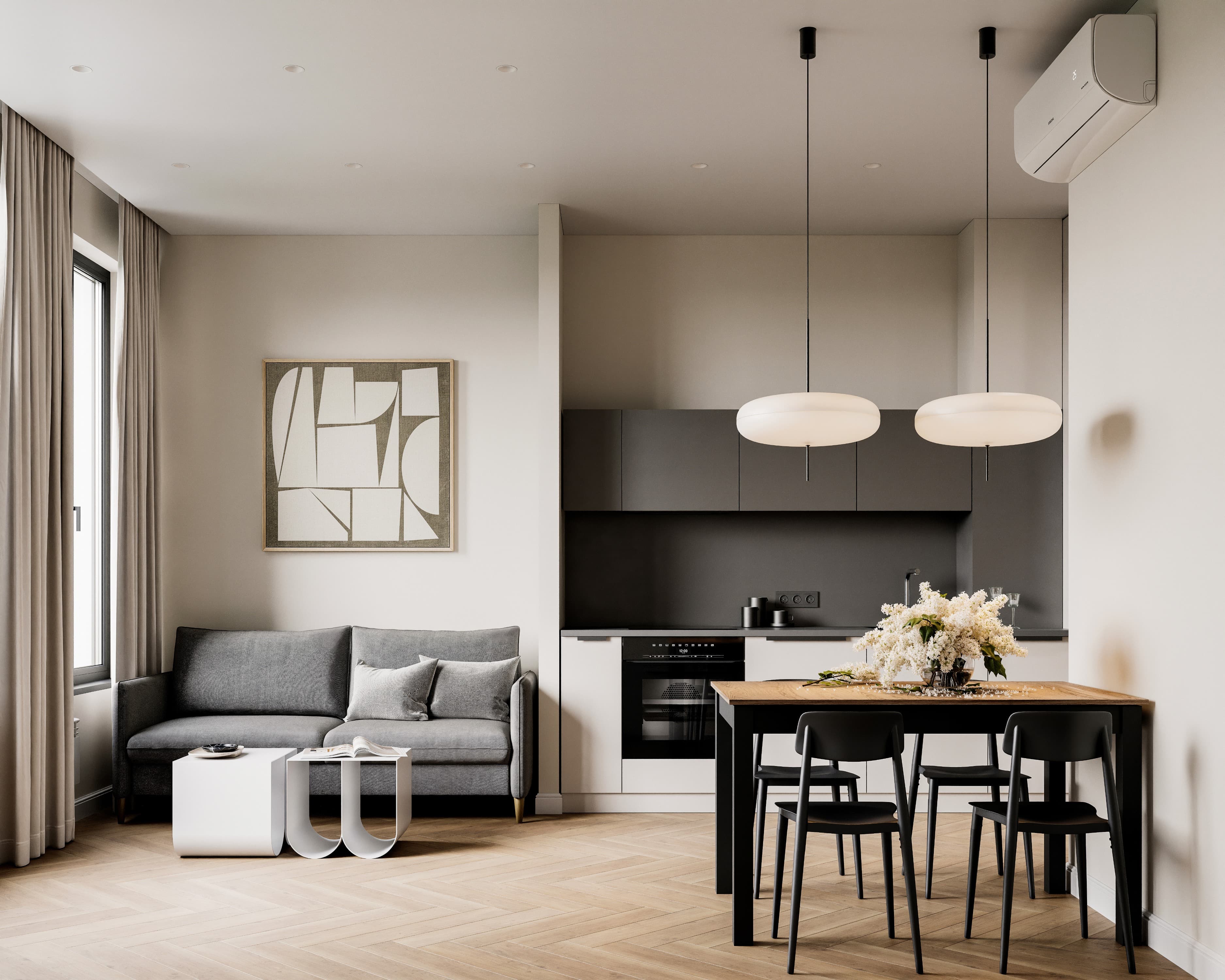 - Полная комплектация квартир: отделка, мебель, бытовая техника, кондиционеры