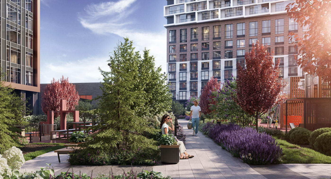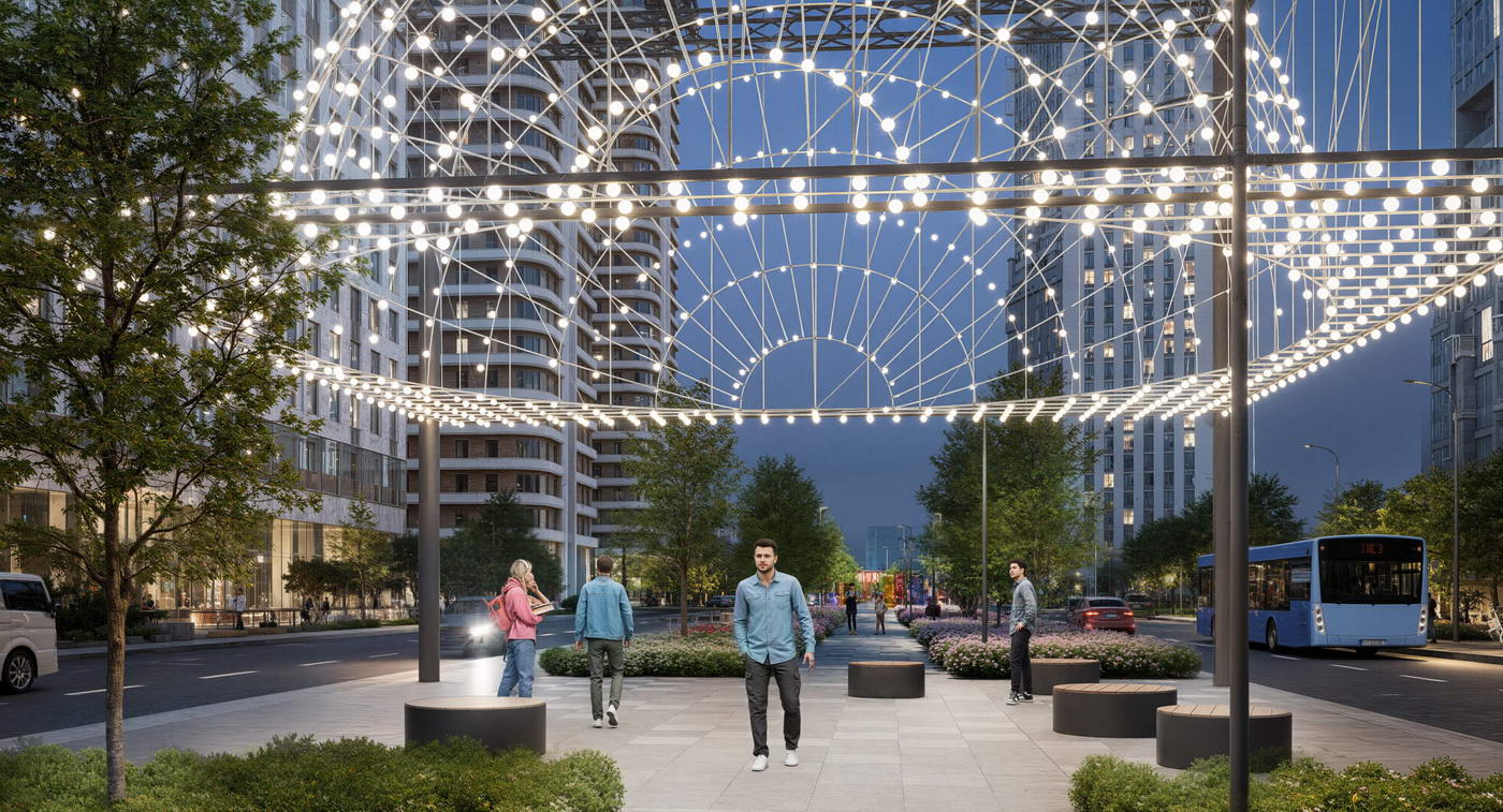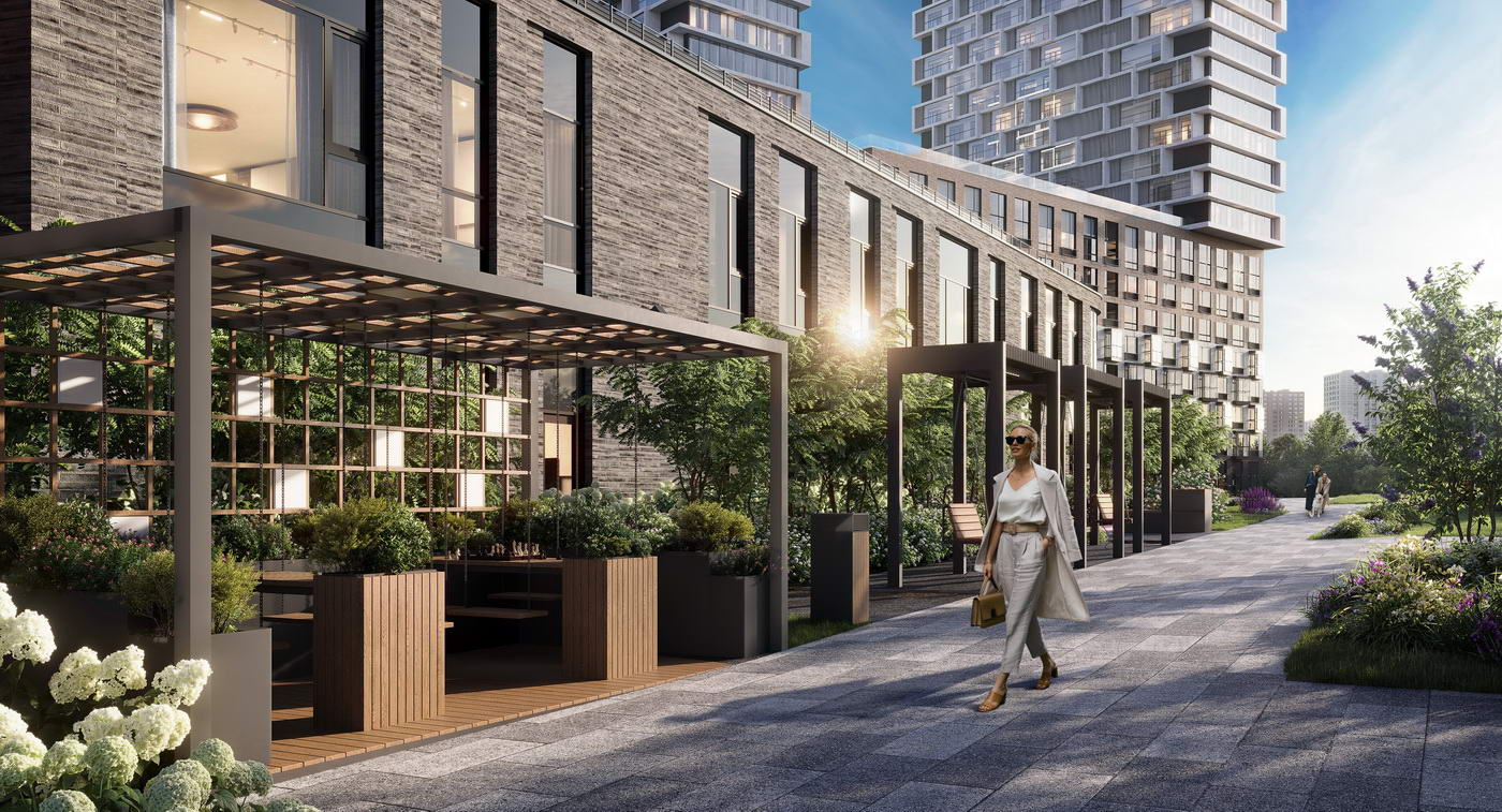 - Стильный архитектурный облик, разнообразие общественных пространств и концептуальное благоустройство