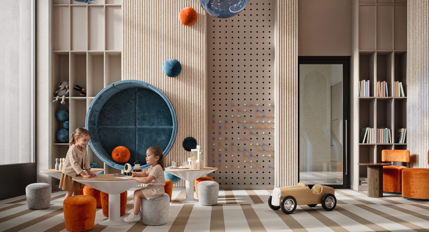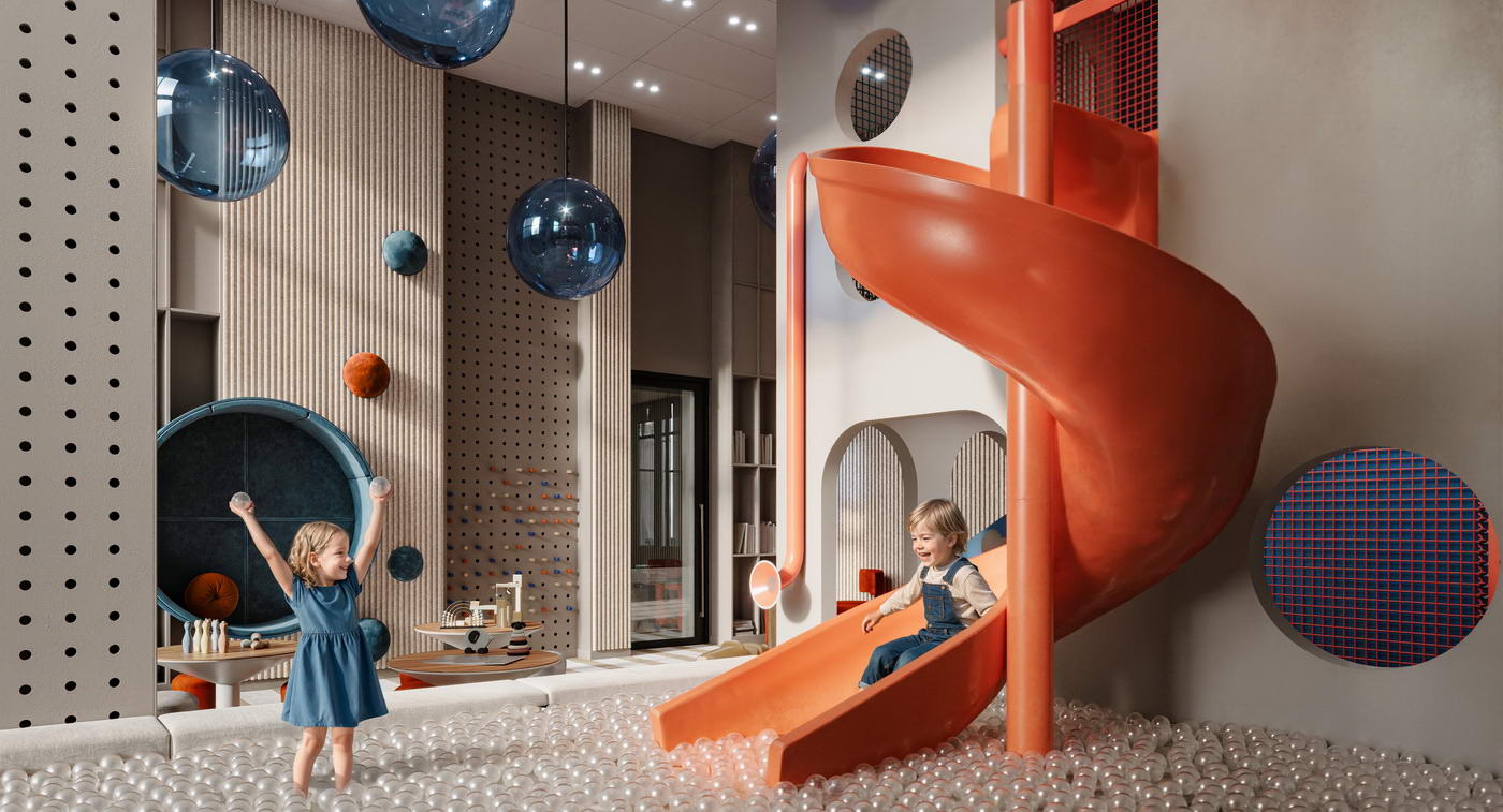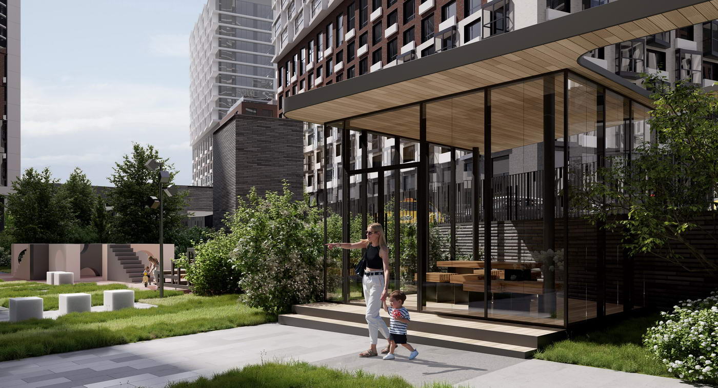 - Разнообразие общественных пространств для жителей любого возраста: детская игровая, репетиторские, лаунжи, коворкинг, спортрум