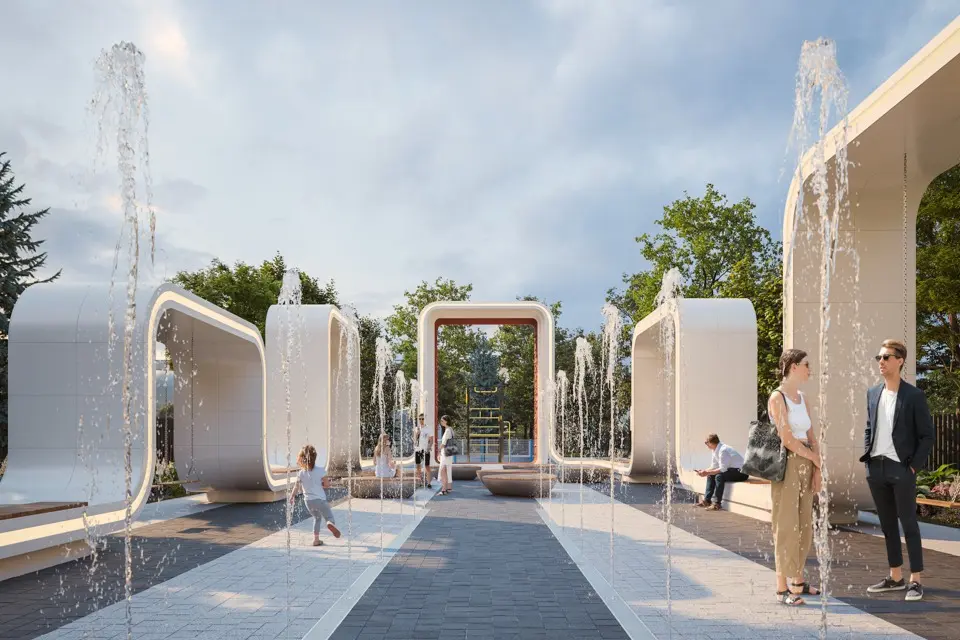 Для юных и энергичных жителей проекта предусмотрены специальные площадки для мини-футбола, стритбола и скейт-парка. Те, кто предпочитает более размеренный темп, смогут заняться спортом на беговых и велодорожках, а с наступлением зимы весь парк превращается в сказочную волшебную страну с катком, где члены семьи смогут весело провести время все вместе. Сердцем «Зеленой реки» стал изящный пешеходный мост, будто парящий над землей на опорах-чашах, обвитых пышными ветвями вьющихся деревьев. Под его живописными навесами за четырьмя столиками в любую погоду можно будет собраться с друзьями, обсудить важные новости, погрузиться в мир настольных игр или просто насладиться красотой окружающего пейзажа, черпая вдохновение в гармонии природы.
